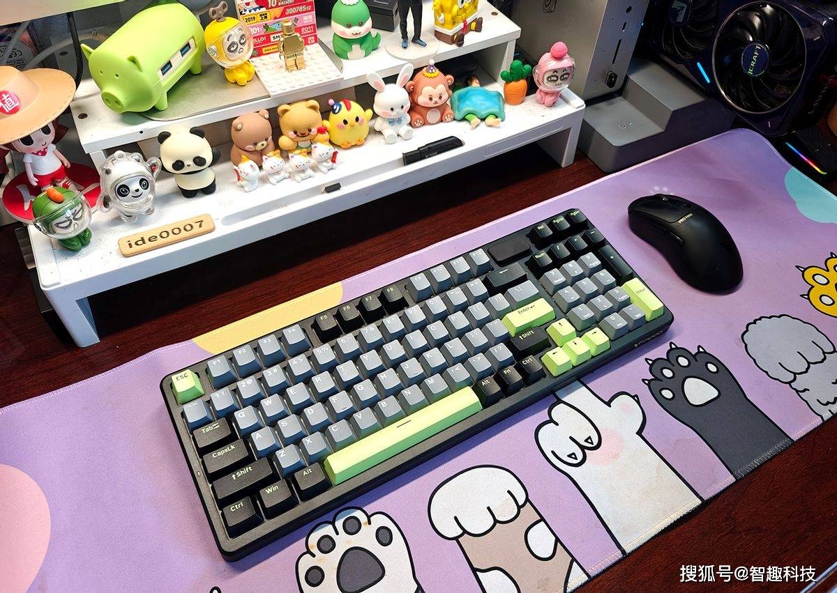 键盘的diy属性同样值得关注。标准化键帽支持自由拆卸更换,内凹弧度设计贴合指尖,长时间使用亦不易疲劳。12种背光模式与侧边炫光效果,为夜间使用增添氛围感,而顶部“时空环境仓”的磁吸盖板下,隐藏着led电量指示灯与2.4g接收器收纳仓,兼顾功能性与设计巧思。