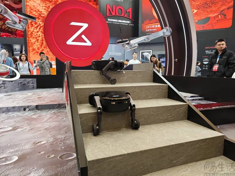 这家企业展出的核心产品,是今年初在ces展会上发布的全球首款轮足式扫地机器人g-rover。与传统双足机器人不同,其反曲关节与轮足结合的设计,使设备在行进时几乎无声,更能跨越障碍物、攀爬楼梯,甚至在台阶处"蹲下"清洁传统机型难以触及的顶部区域。这种将科幻构想转化为实用功能的创新,让参观者直观感受到技术落地的价值。