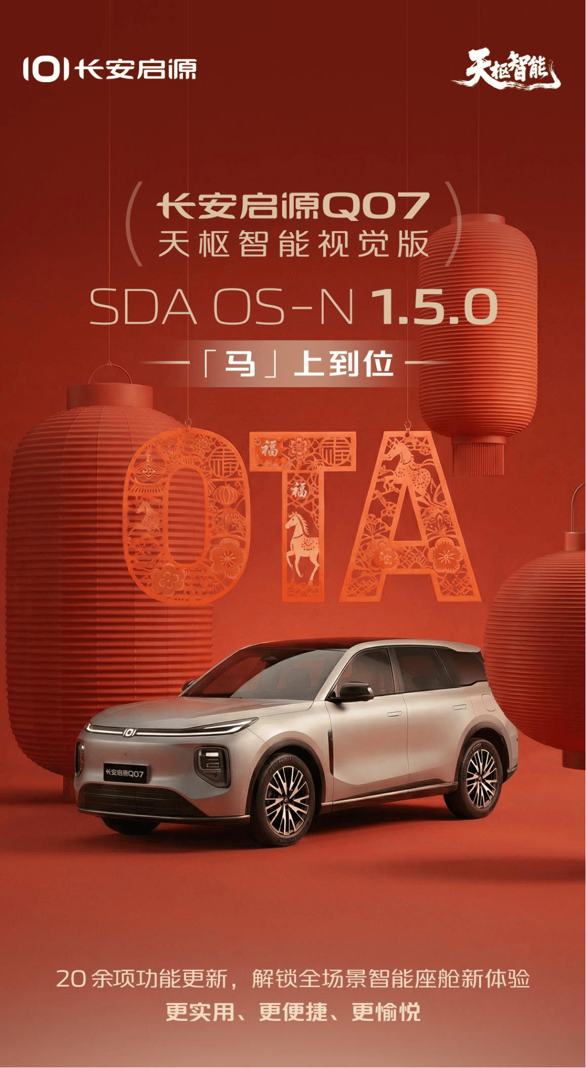长安启源q07天枢智能视觉版近日迎来重大ota升级,全量推送sda os-n 1.5.0版本,为家庭用户带来多项突破性功能优化。此次升级不仅强化了车机与手机的互联生态,更在个性化体验与舒适性配置上实现全面跃升,进一步巩固其在15万级新能源suv市场的标杆地位。