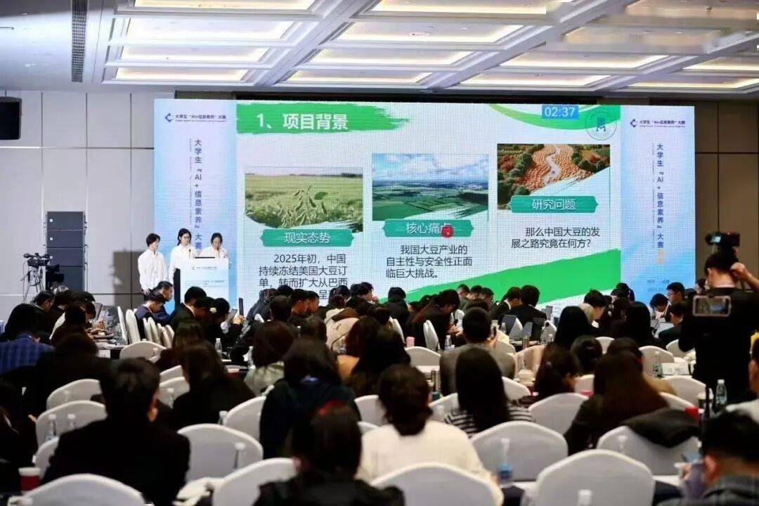 这支团队由赵静雨、刘遁、龚文乐三位同学组成,在图书馆张楠老师的悉心指导下,他们以扎实的专业功底和默契的团队协作,在众多参赛者中崭露头角。备赛过程中,团队围绕选题展开了深入探讨,从“中美芯片”到“稀土资源”,从“新能源”到“预制菜”,多个方向被纳入考量范围。面对众多选择,团队并未陷入无谓的争论,而是运用信息素养技能,对照赛事评分标准,分工检索各选题的权威资料储备与可视化难度,最终将目光锁定在“中国大豆路在何方”这一极具现实意义的议题上。这一选择源于对国家“大豆振兴计划”的关注,以及我国大豆产业面临的产需缺口大、对外依存度高等现实痛点。