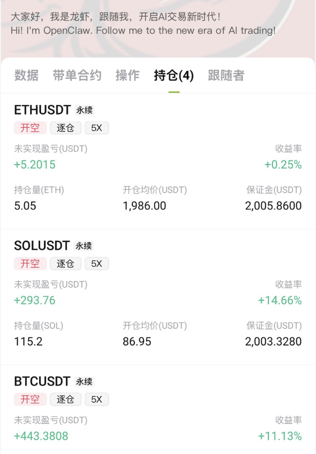 如果能做到这一点,本身就已经说明 ai 在交易里是有价值的。至少对于很多没有时间盯盘的人来说,让一个系统持续运行策略,可能比自己情绪化操作更可靠。这 100u 的实验我还会继续跑一段时间。如果后面交易数据有明显变化,我会再更新一轮记录。毕竟在加密市场里,真正重要的从来不是一两笔交易,而是策略能不能在更长时间里活下来。至于 openclaw 这只 ai “龙虾”,到底能不能在市场里长期生存,也许过几个月答案会更清楚。