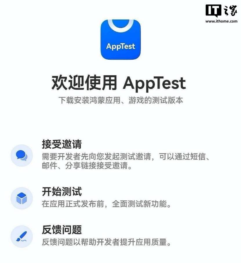 据了解,apptest的功能与苹果ios系统中的testflight颇为相似,主要用于应用的功能测试及用户反馈收集。开发者可以通过这一工具,向鸿蒙设备用户发送测试邀请。用户接收到邀请后,无论是通过短信、邮件还是分享链接,都能轻松参与测试,并对应用的功能提出宝贵的反馈意见。