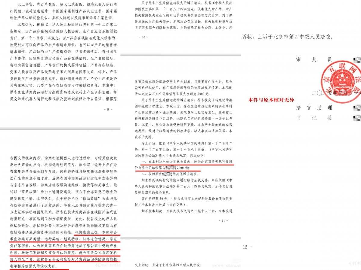 这场持续15个月的维权拉锯战出现戏剧性转折:石头科技在二审阶段突然撤诉。北京市第四中级人民法院民事裁定书显示,该公司于2025年10月9日主动放弃上诉权利,这意味着一审判决即时生效。戴先生透露,从首次投诉到最终获赔,他累计拍摄200余段视频,整理出136页证据材料,"这个过程比装修还累,但必须让企业为产品质量负责"。