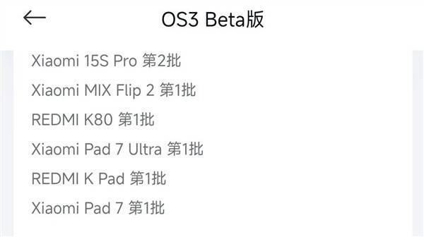小米澎湃os 3系统迎来重要进展,第二批beta版本测试于近日正式开启。此次更新覆盖五款机型,包括小米mix flip 2、redmi k80、小米平板7 ultra、小米平板7以及redmi k pad,标志着该系统适配范围持续扩大。